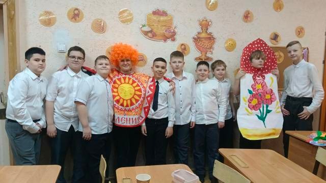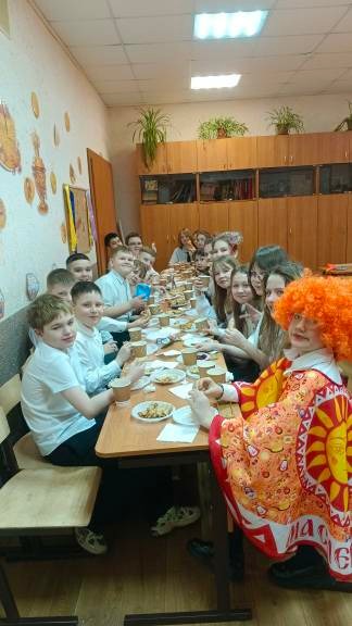 После этого весь класс дружно принял участие в масленичных гуляньях. Под весёлые песни, шутки и смех дети продегустировали восемь различных видов блинов и устроили памятную фотосессию.